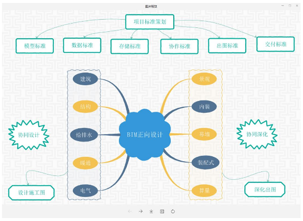 基于BIM技术的正向设计,需要改变原有的设计工具,需要在新的工具上完成传统的设计成果表达。这就要求在新的工具上制定很多标准,工具的组织标准,模型的深度标准、图面的表达标准,数据交互标准、图纸输出标准等。制定这些标准不仅要求标准制定者要对新的设计工具有极高的应用能力,而且要求标准制定者对传统的设计成果要求有深入的理解,还需要做大量的探索尝试,实施难度较大。