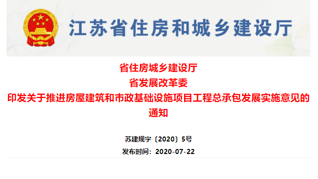 为进一步提升我省建设工程质量、提高工程管理效率和水平,增强建筑业企业综合实力和核心竞争力,加快我省建筑业转型升级,根据国务院办公厅《关于促进建筑业持续健康发展的意见》(国办发〔2017〕19号)、《省政府关于促进建筑业改革发展的意见》(苏政发〔2017〕151号)精神和住房城乡建设部《关于进一步推进工程总承包发展的若干意见》(建市〔2016〕93号)要求,现就认真贯彻落实住房城乡建设部、国家发展改革委《关于印发房屋建筑和市政基础设施项目工程总承包管理办法的通知》(建市规〔2019〕12号,以下简称《通知》),积极推动工程建设组织方式改革,推进我省房屋建筑和市政基础设施项目工程总承包发展提出如下实施意见。